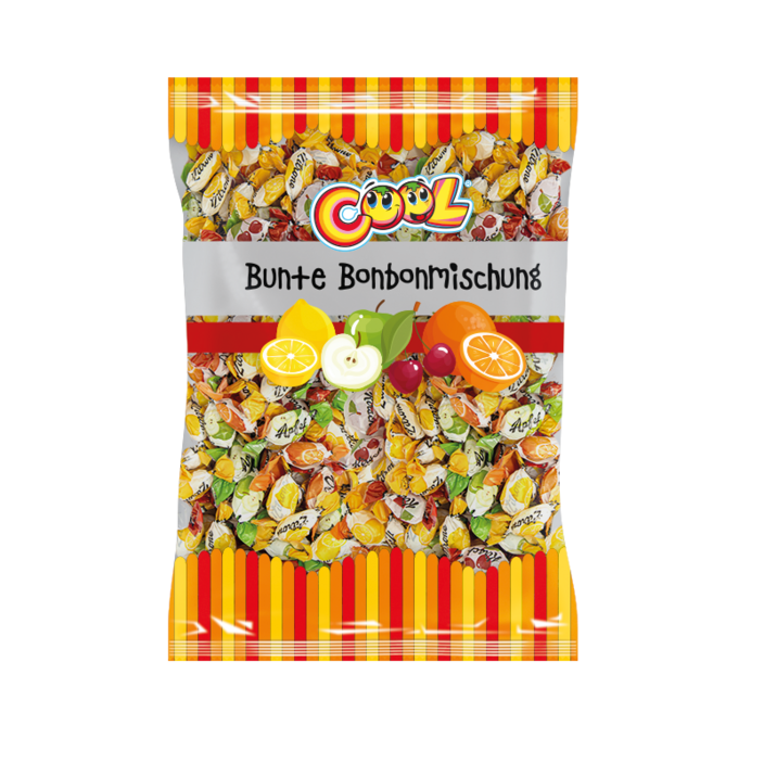 Bonbonmischung mit verschiedenen Geschmacksrichtungen, einzeln verpackt, im Beutel