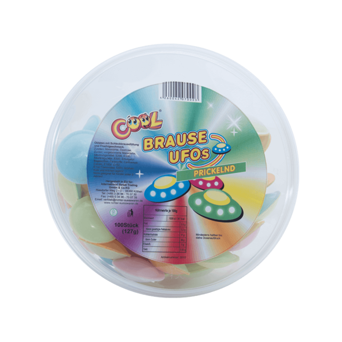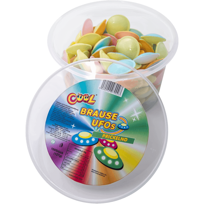 Prickelndes Erlebnis - Mini-Ufos aus Esspapier mit Brausepulverfüllung und Fruchtgeschmack in wieder verschließbarer Haushaltsdose. Galaktisch gut!