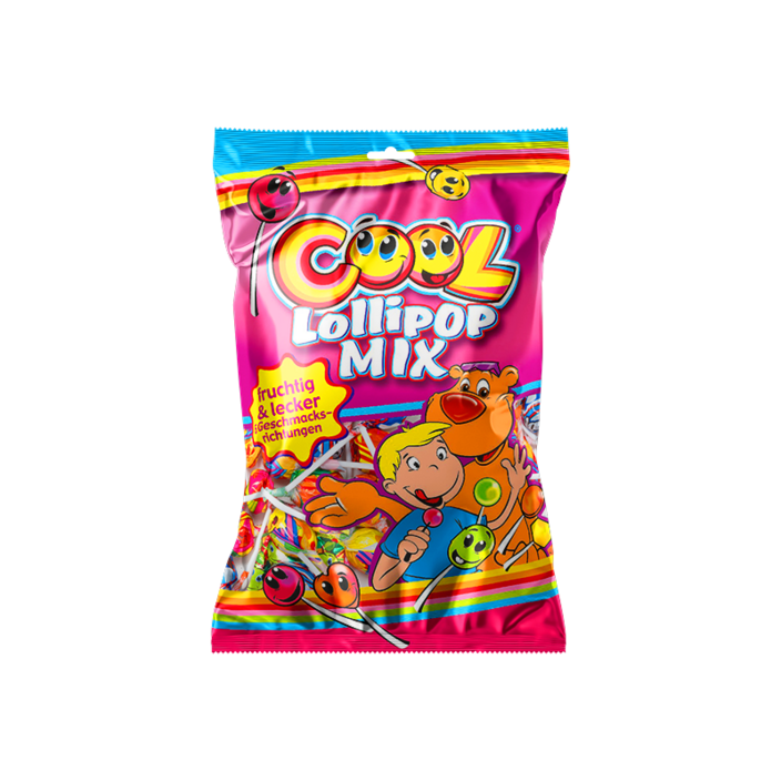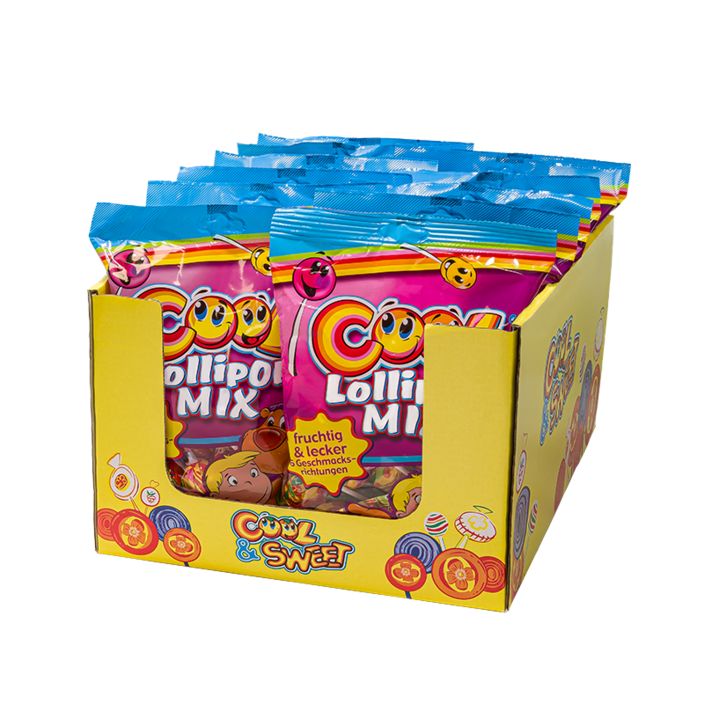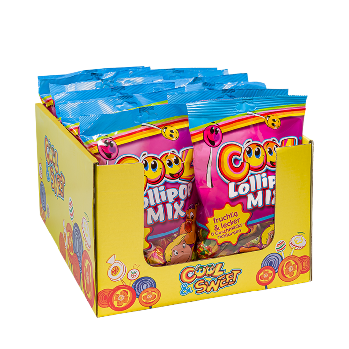 Lutscher in verschiedenen Formen und Geschmacksrichtungen, einzeln verpackt