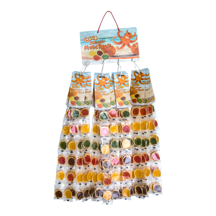 Schleckmuscheln einzeln verpackt, als Stripe inklusive Schild zum Aufhängen