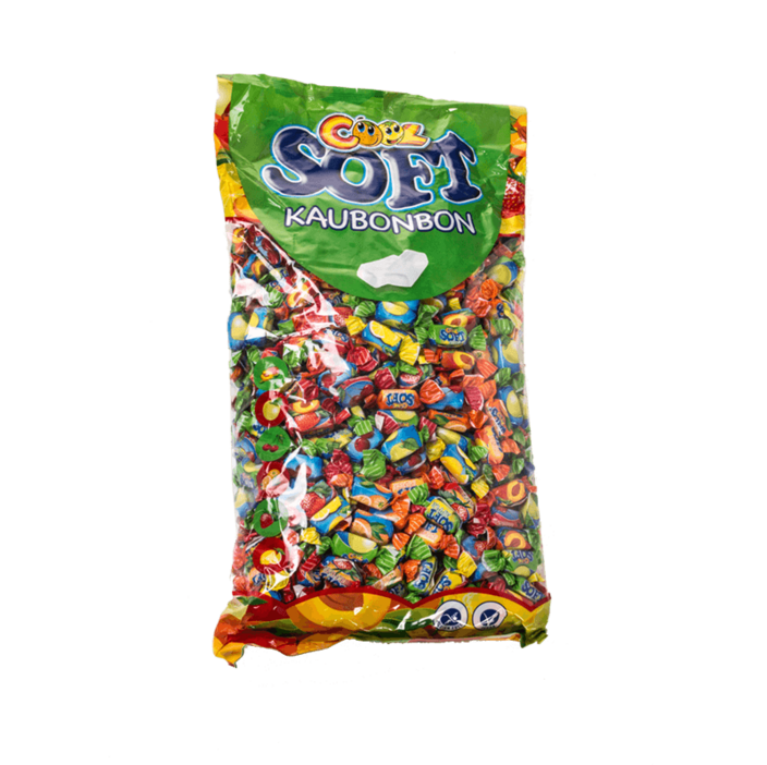 Kaubonbons mit verschiedenen Geschmacksrichtungen, einzeln verpackt, im Beutel