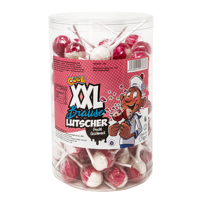 Lolli mit Bause-Geschmack, einzeln verpackt, in wieder verschließbarer Dose