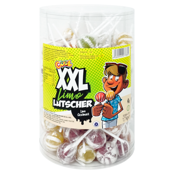 Lolli mit Limo-Geschmack, einzeln verpackt, in wieder verschließbarer Dose