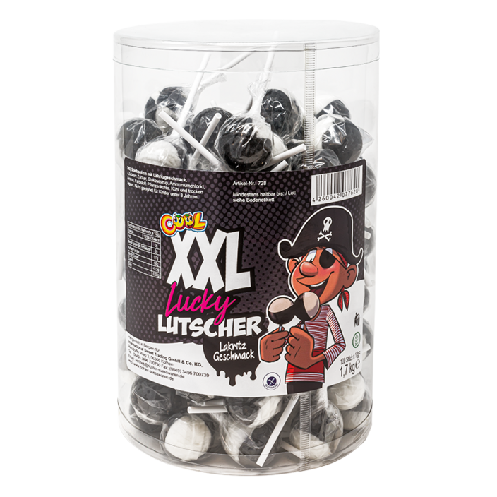 Lolli mit Lackritz-Geschmack, einzeln verpackt, in wieder verschließbarer Dose