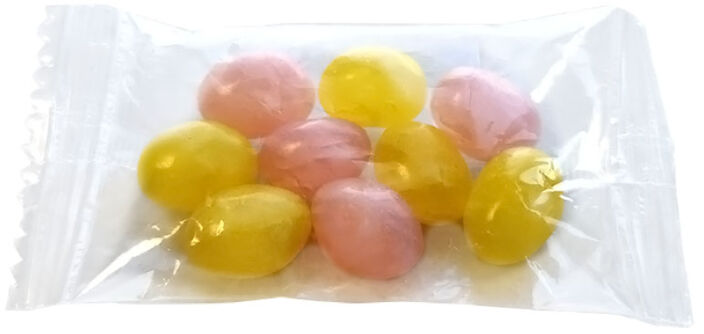 Maisstärke, Zucker, Dextrose, Glukosesirup, Säuerungsmittel: Äpfelsäure; Aromen, Farbstoff: E162, E160a.