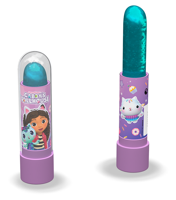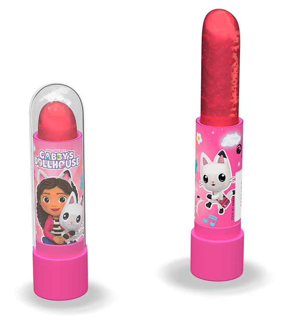 Hartkaramelle in Lippenstiftform im Gabby's Dollhouse Design