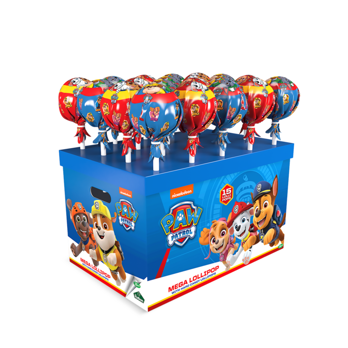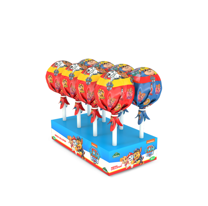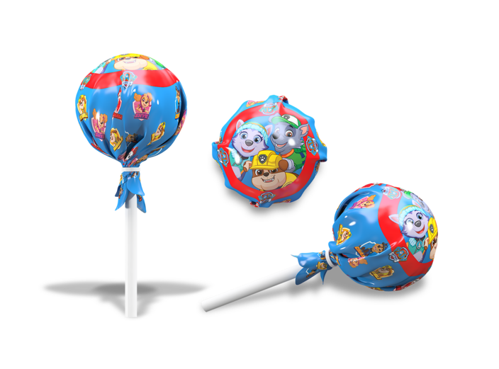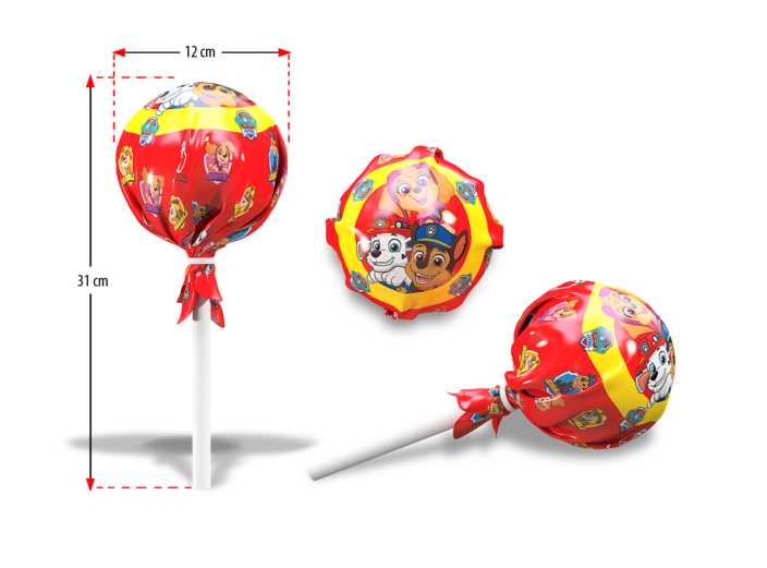 Stielbonbons mit Orangen-, Erdbeer- und Heidelbeergeschmack im Paw Patrol-Design