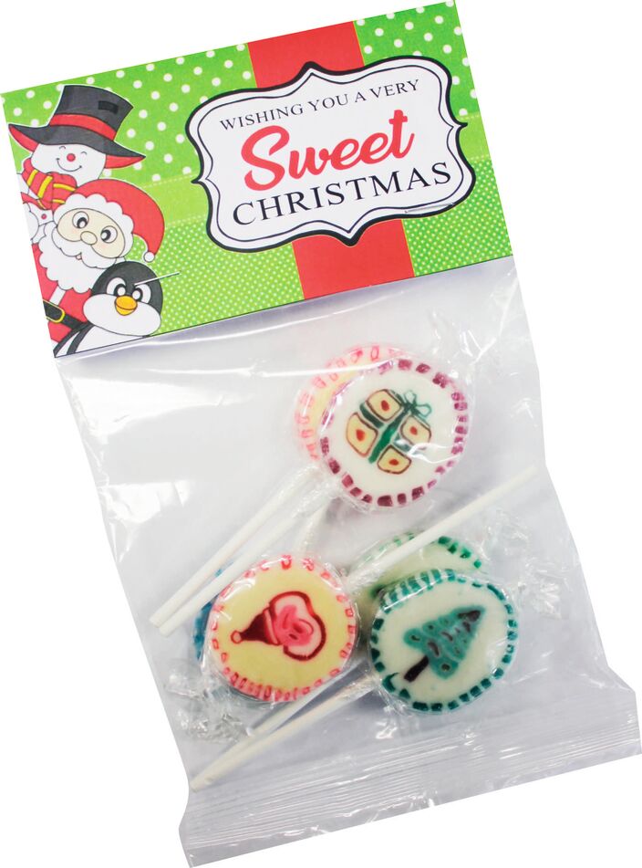 traditionelle Rockslollies mit weihnachtlichen Motiven, im Rocksbeutel, einzeln verpackt