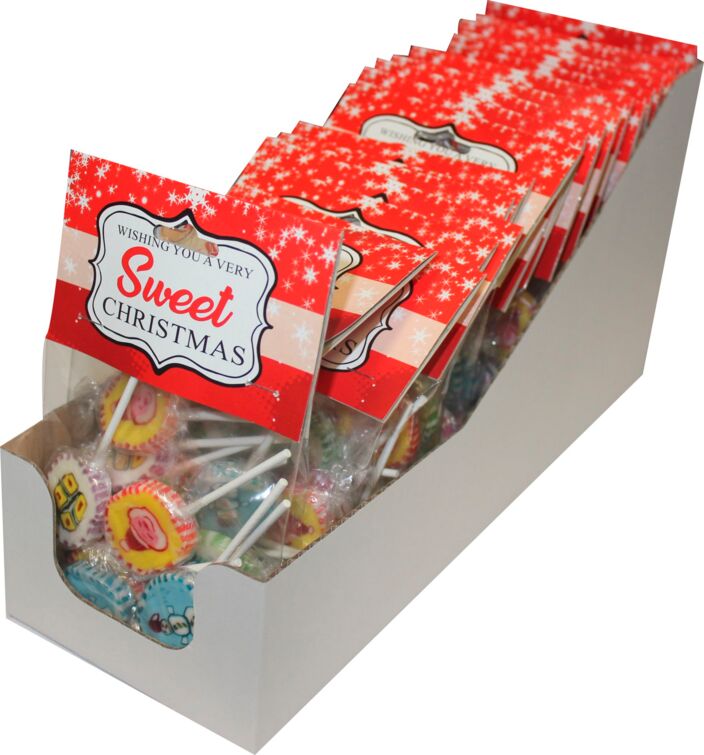 traditionelle Rockslollies mit weihnachtlichen Motiven, im Rocksbeutel, einzeln verpackt